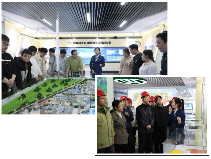 随后,师生一行来到公司厂史馆,全面了解企业发展历程。工作人员围绕企业创业发展、技术创新、荣誉成果、文化传承等方面进行详细介绍,充分展现了企业的责任担当与奋进精神。同学们在各类展品前驻足观看、交流探讨,在熟悉企业发展脉络的同时,对行业趋势、职业素养和就业方向有了更为清晰的认识。